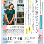 2025年10月6日 / 最終更新日時 : 2025年10月6日 umeko お知らせ 【講演】『虎に翼』脚本家 吉田恵里香さん(10/24 八戸市公会堂文化ホール) 八戸市民大学講座に、2024年度前期の連続テレビ小説『虎に翼』の脚本を手掛けられた吉田恵里香さんが登壇されます。 ■八戸市民大学講座とは市民を対象に、知性を磨き薫り高い教養を身に付ける生涯学習の場として、昭和45年度に開 […]